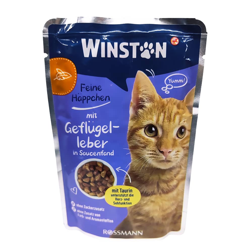 پوچ گربه وینستون با طعم مرغ و جگر در ژله Winston Poultry & Liver In Jelly وزن 100 گرم
