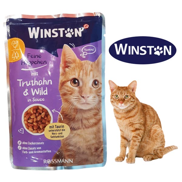 پوچ گربه وینستون طعم گوشت گوساله و بوقلمون 100 گرم (بسته بندی جدید)