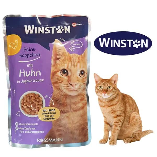 پوچ گربه وینستون با طعم مرغ در سس مرغ Winston Chicken In Chicken Sauce وزن 100 گرم