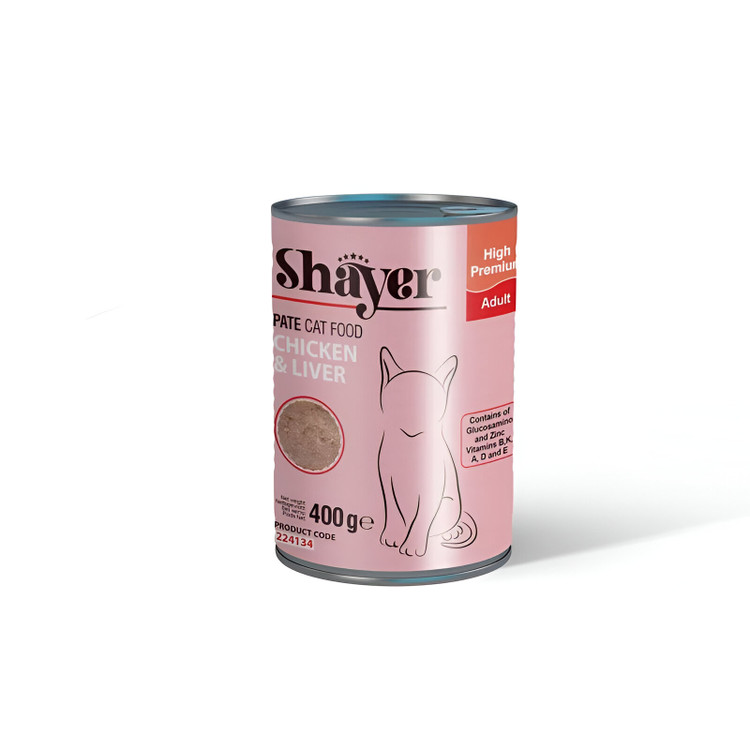 کنسرو غذای گربه شایر مدل مرغ و جگر وزن 400 گرم